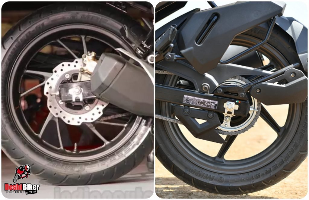 There is a huge difference in the wheelset of these two bikes. CB Hornet Deluxe comes with paired ten-spoke alloy rims with 80/100-17 section in front and 130/70-17 section tubeless tyre in the rear wheel. Where XBlade 160 gets five-spoke alloy rims with 100/80-17 section in the front and 140/70-17 section tubeless tyre in the rear wheel.