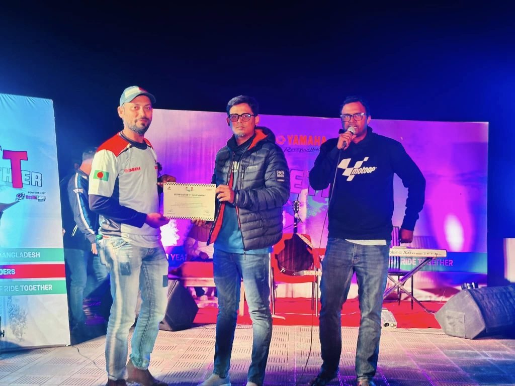 On the evening of 9 December 2024, riders who completed TT ride without any pause received TT Achievement Certificates. SMK and Studds Helmets were given to riders for best performance and contributions to this ride. All riders shared their TT ride experiences and thanked to Deshi Biker and Yamaha for organizing this ground-braking history. Riders also remarked on the initiatives of DeshiBiker to promote importance safety gear, they said bikers are more conscious about essential safety gear due to DeshiBiker. Riders said they expect more exciting events from Deshi Biker.