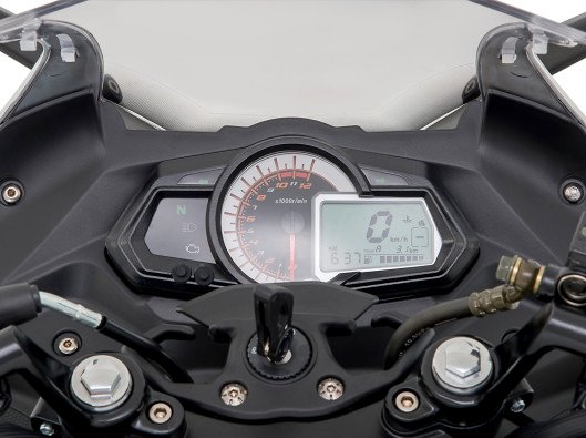 The dashboard of this bike is semi-digital. The tachometer is analog, and the other features like Trip meter, speedometer, and fuel gauge are digital. Engine temperature meter is installed as an additional feature. Keeway tried to give everything possible on the bike. This is one of the best choices for those who have a limited budget and looking for a full-faired sports bike.