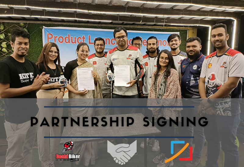 Kite Premium Tyre Sealant is become the new partner of Deshi Biker. The Signing event is held on 30th October at Nandica Rooftop Restaurant, Mirpur. In this partnership signing every officials of Deshibiker were attend along with the officials of Kite. The signing was done throughout some fun, experience sharing from experts and cake cutting ceremony etc.
