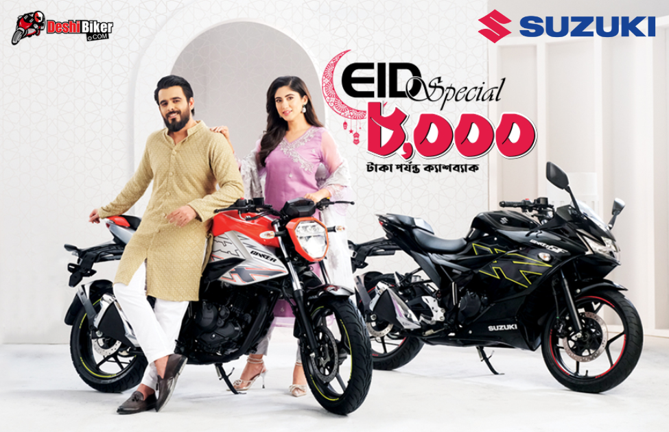Suzuki is one of the well-known motorcycle brands in Bangladesh, Japanese motorcycle brand Suzuki has become popular among young motorcycle enthusiasts in our country. Rancon Motor Bikes Limited, the local manufacturer and distributor of the world-famous Suzuki Motorcycle in Bangladesh, pleased to announce Eid Special cashback on selected motorcycles. In this Eid, Suzuki offers upto 8,000/- taka cashback and an exclusive windbreaker. Suzuki Gixxer SF FI ABS, the hot cake in Suzuki lineup now available at 341,950 after 8,000/- instant cashback. Similarly, Suzuki other top-notch bikes of Gixxer series have exclusive cahback, This incredible cashback offer started on 12 March 2024, the first Ramadan, and will run until the night before Eid.