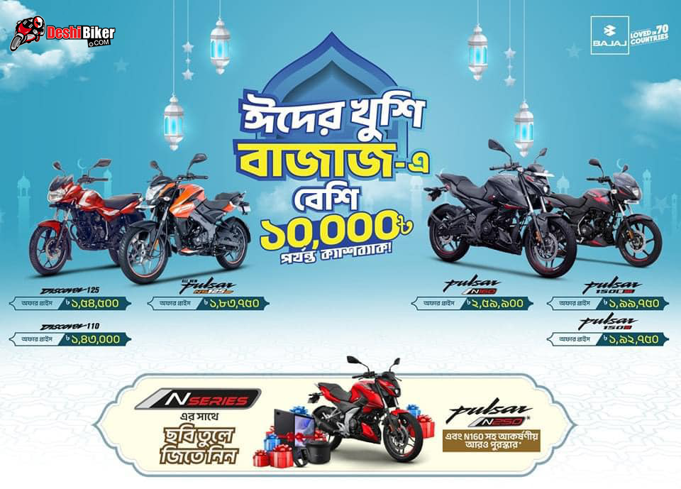 Bajaj is the most reliable motorcycle brand, based on India but loved by more than 70 countries worldwide. Bajaj motorcycles have been very popular in Bangladesh since the very beginning, Bajaj Pulsar, and Discover series are the game-changer models in the motorcycle area, especially for the performance-oriented budget concern customers. On this Eid Bajaj comes with an amazing offer to accelerate Eid excitement, Bajaj off 10,000/- BDT on Pulsar N160, Pulsar 150 and Discover series. Precisely, customers will get 10,000/- discount on Pulsar N160, Pulsar 150 SD ABS, Pulsar 150 SD, Discover 125 and Discover 110.